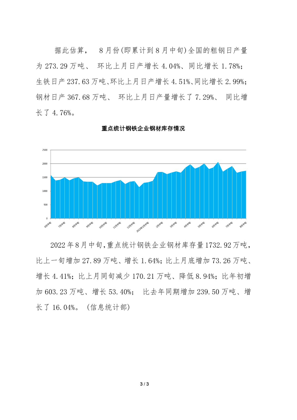 據(jù)中鋼協(xié)數(shù)據(jù)顯示,2022年8月中旬,重點(diǎn)鋼企粗鋼日均產(chǎn)量199.63萬噸,環(huán)比增長2.72%;鋼材庫存量1732.92萬噸,比上一旬增加27.89萬噸,增長1.64%。